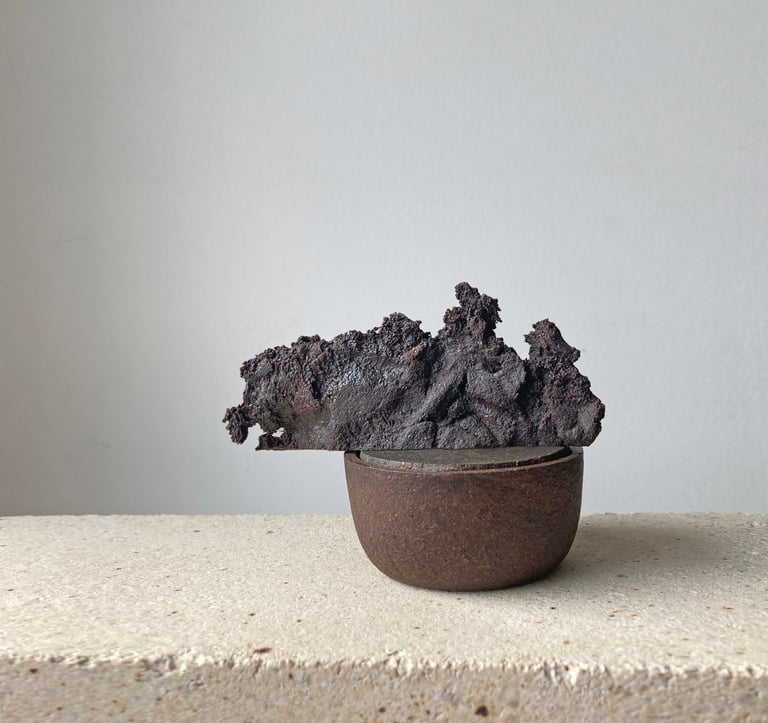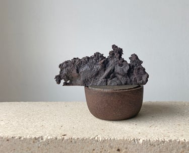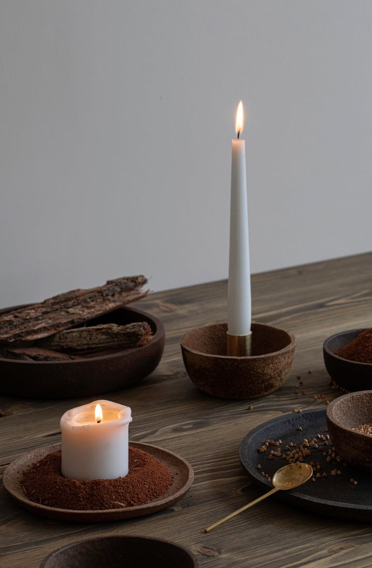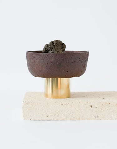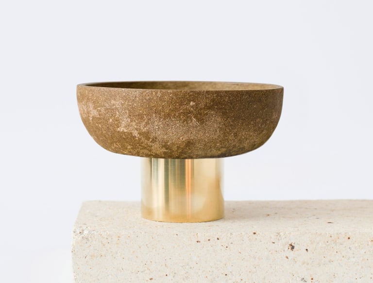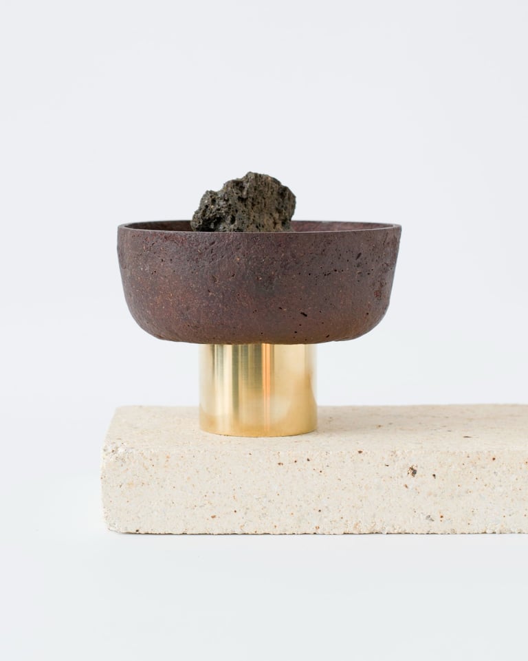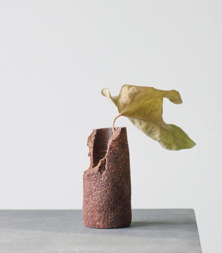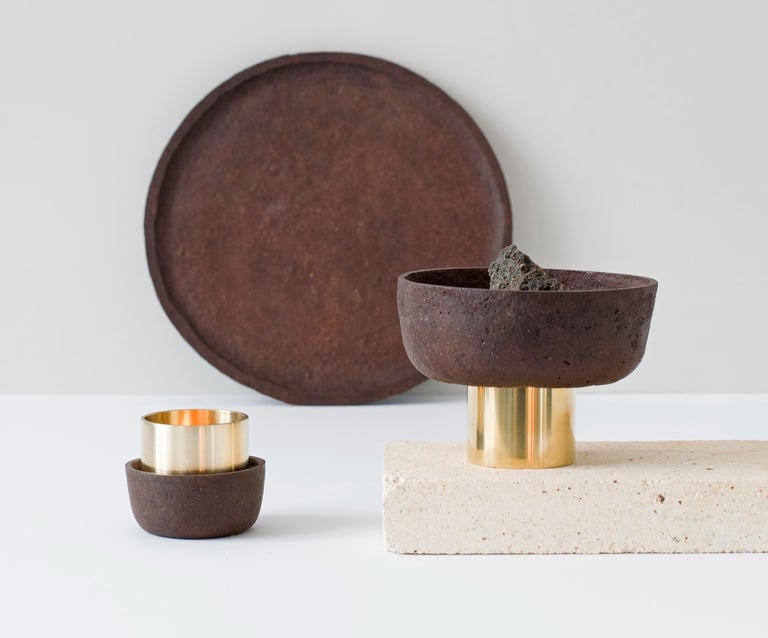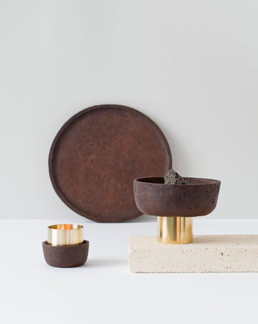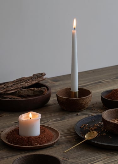 Tree bark and leaves - a byproduct of the tree cutting industry- are transformed into sustainable design objects with a unique appearance and a scent of a tree. No two items in GIRIA are the same: each is made by hand from the bark dust of different kinds of trees (Oak, Pine, Ash and tree leaves) that gives a unique texture, varying in colour and roughness of a surface.