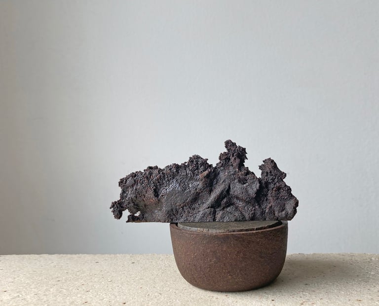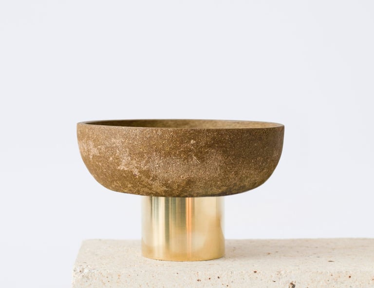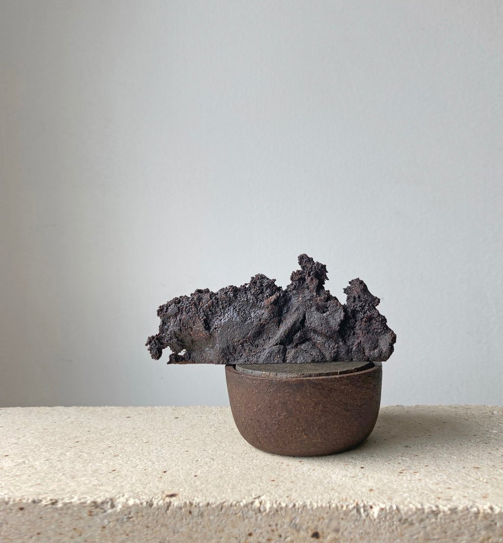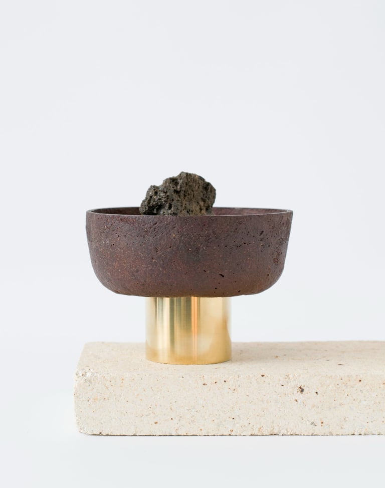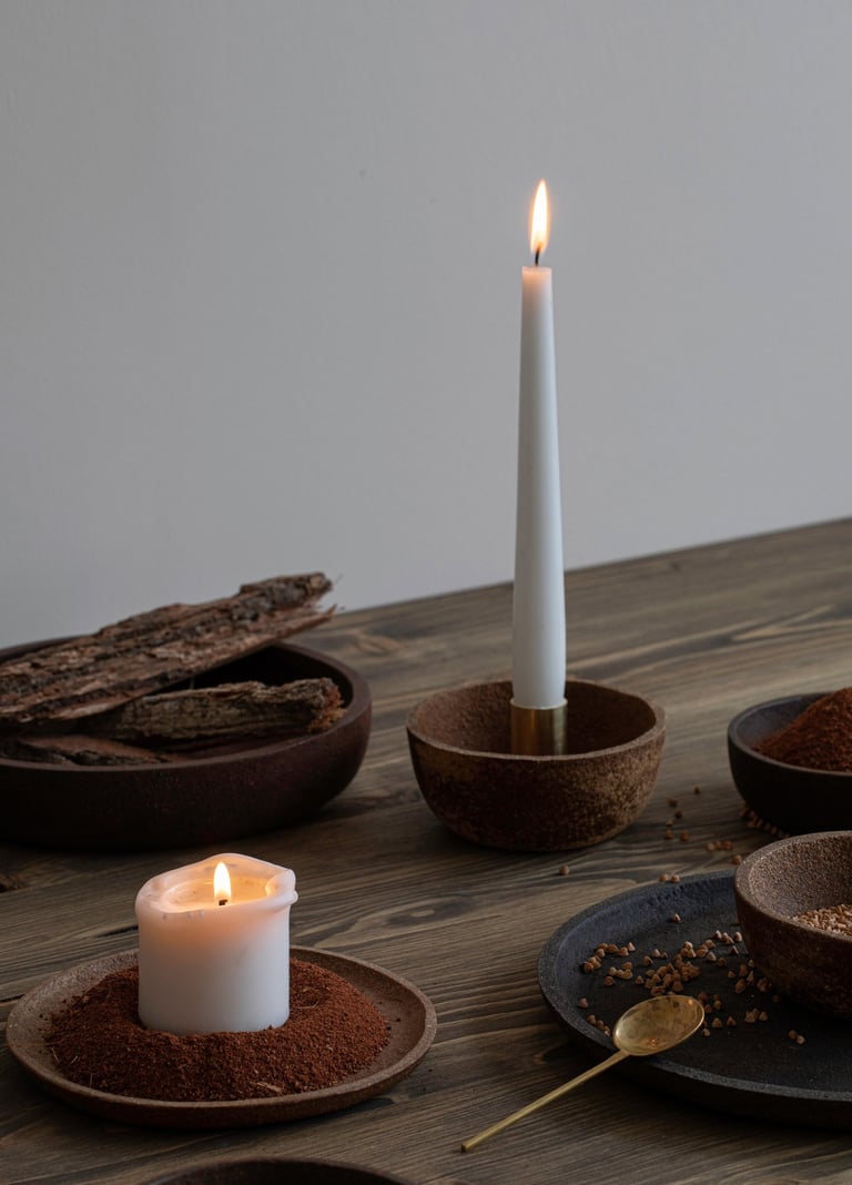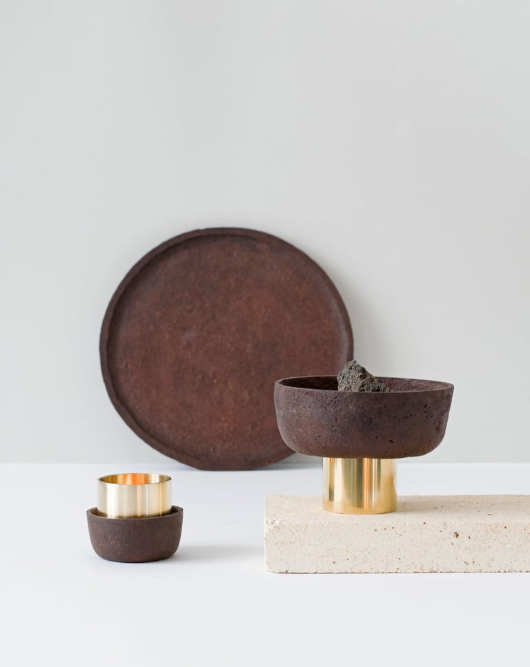 Tree bark and leaves - a byproduct of the tree cutting industry- are transformed into sustainable design objects with a unique appearance and a scent of a tree. No two items in GIRIA are the same: each is made by hand from the bark dust of different kinds of trees (Oak, Pine, Ash and tree leaves) that gives a unique texture, varying in colour and roughness of a surface.